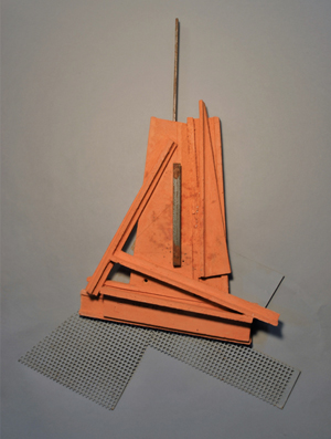 1986-512 Werknr. 512, o.T. Keramik, Eisen Draht Holz bemalt 100x27x13 sig. / dat. seitlich Nachlass |