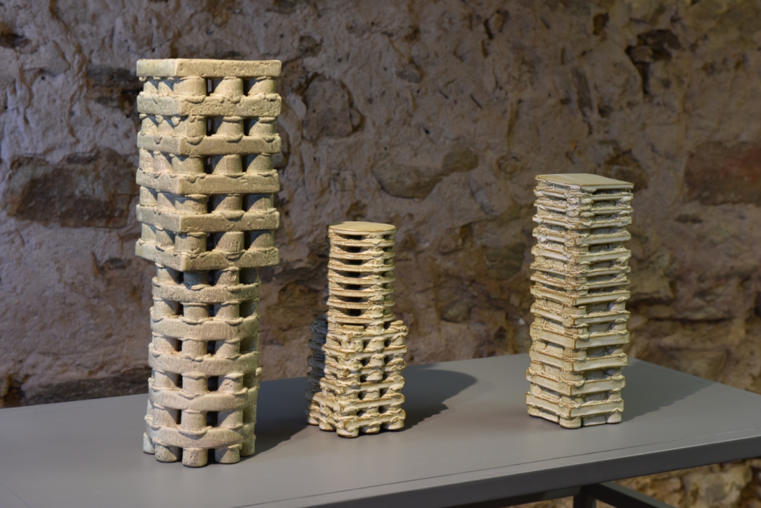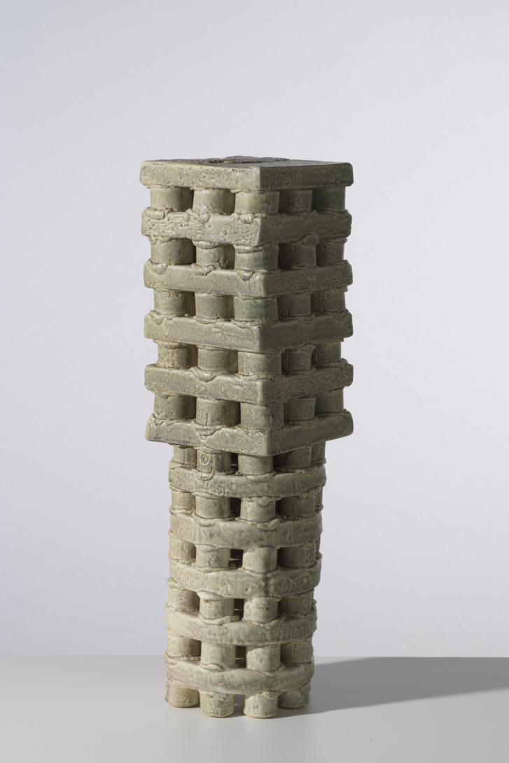 Franz Josef Altenburg’s skeletthafte Arbeiten stehen im Gegensatz zu den organischen Plastiken von Hans Fischer und eröffnen eine weitere Ausdrucksform der keramischen Skulptur.
