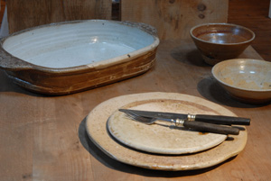 Woodfired eathenware with transparent and colored glazes